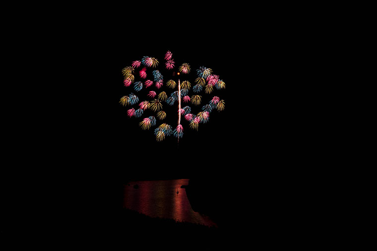 水辺での打ち上げとあって、花火の反射を入れての、インスタ映えする写真が撮れます。