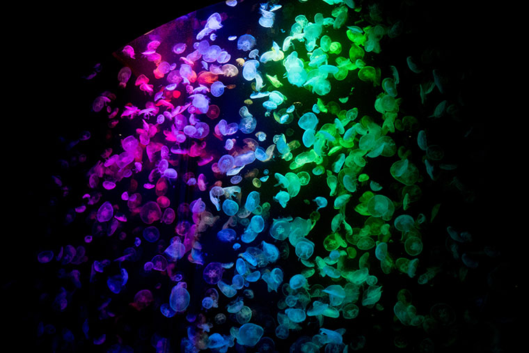 水族館なので、天候にも左右されませんし、被写体の「クラゲ」はキレイで、絵になりますし、展示方法も「カラフル」だったりしますので、インスタグラムや、SNSにアップするには、とても良い写真が撮れます。