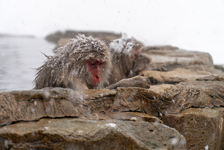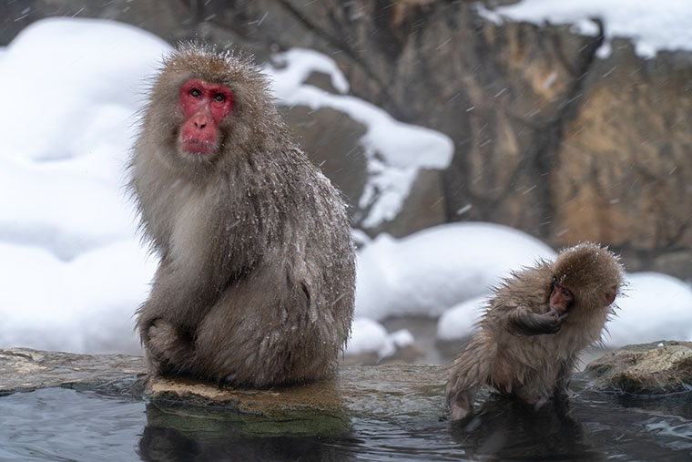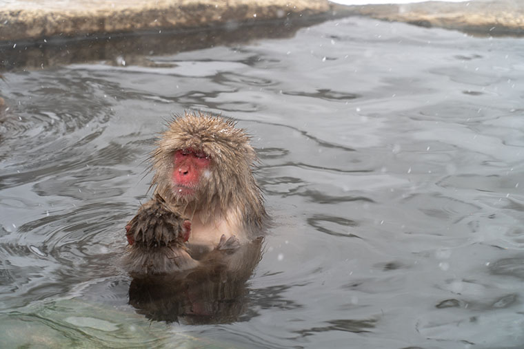 長野県、地獄谷野猿公苑では、世界でも珍しい、温泉に浸かる「Snow Monkey」を撮ることができます。